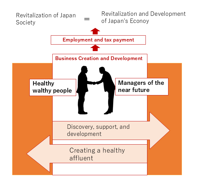 We encourage such individuals to contribute to society by supporting and nurturing promising next-generation business leaders?referred to as “near-future executives”?through the sharing of experience-based knowledge as well as through financial support.